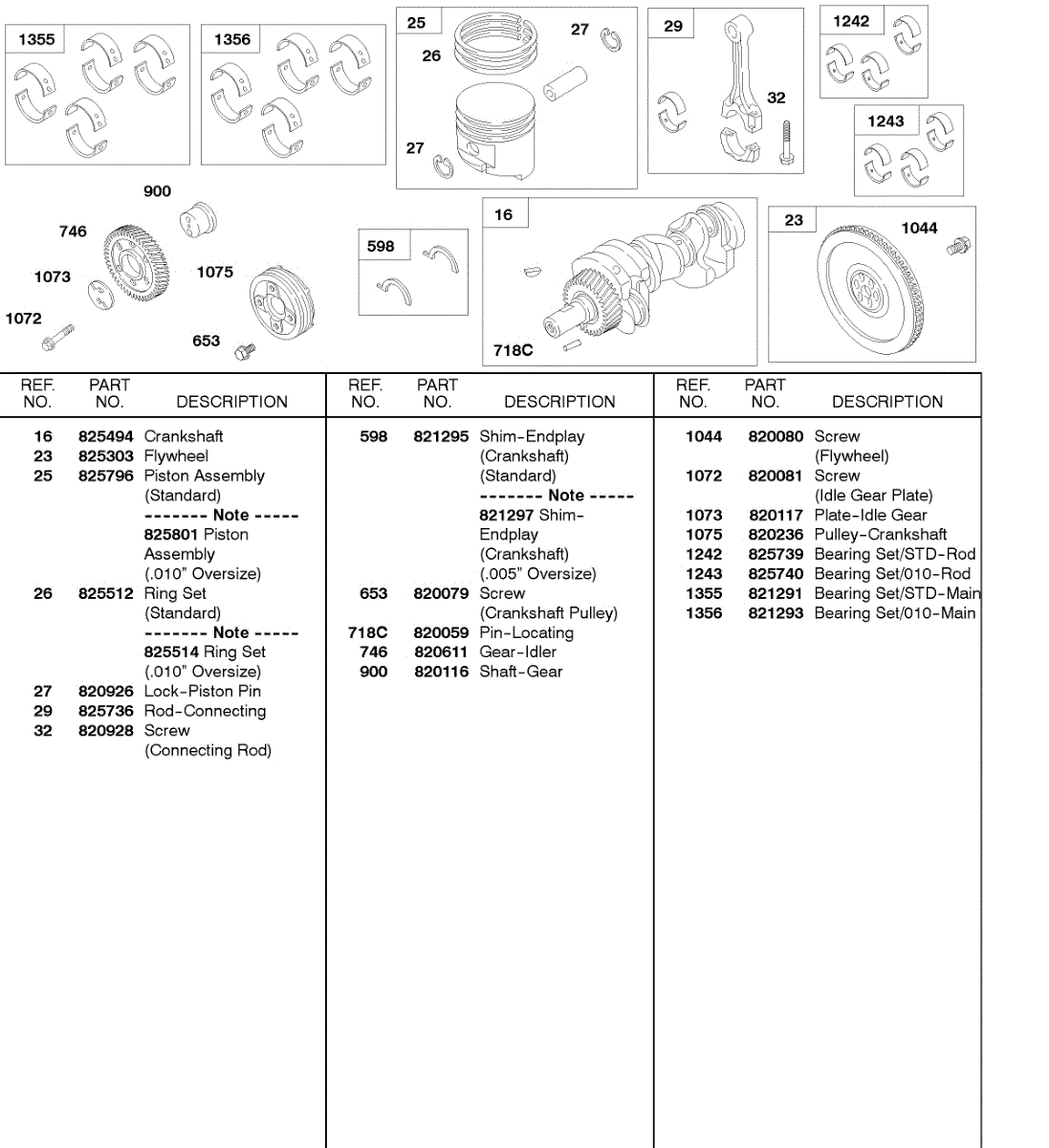 Parts for Briggs & Stratton 58A447-0234-99: Piston, Crankshaft, Flywheel Parts