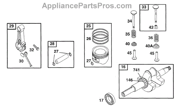Parts for Briggs & Stratton 19C432-0056-01: Piston Group, Crankshaft Parts