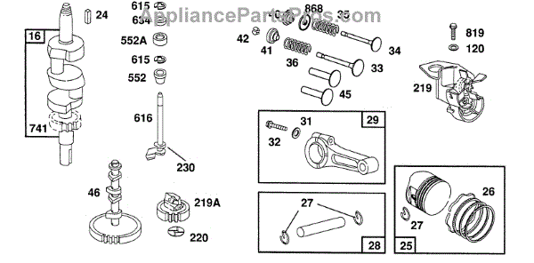 Parts for Briggs & Stratton 402707-1208-01: Piston Group, Gears Parts