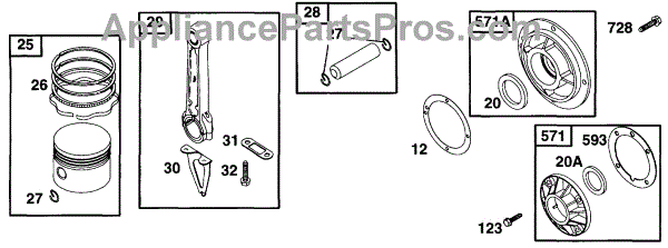 Parts for Briggs & Stratton 233451-2530-08: Piston Grp, Bearing Cvrs, Parts
