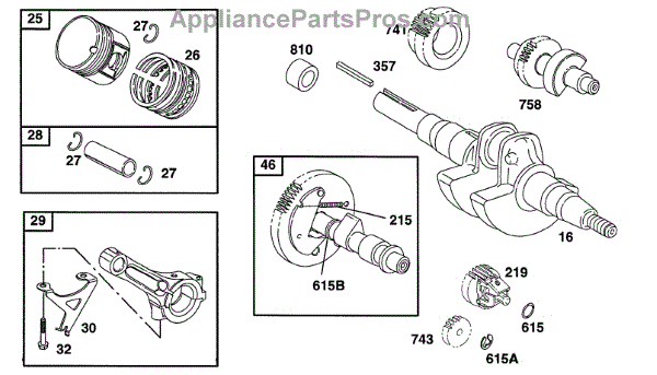 Parts for Briggs & Stratton 161432-0070-06: Piston Grp, Crank, Cam Parts