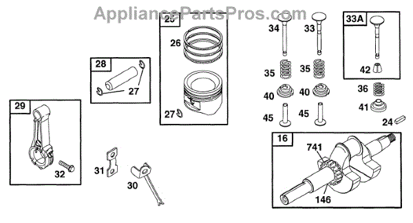 Parts for Briggs & Stratton 194412-1131-01: Piston Grp, Crank Parts