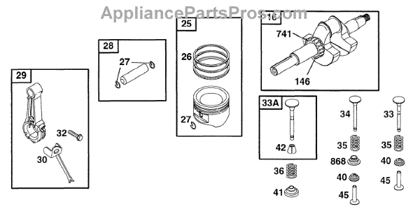 Parts for Briggs & Stratton 19B412-0067-01: Piston Grp, Crank Parts