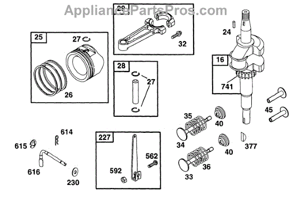 Parts for Briggs & Stratton 135702-0016-03: Piston Grp, Crankshaft Parts