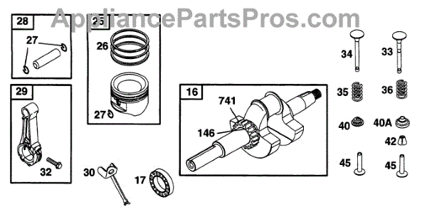 Parts for Briggs & Stratton 226432-0047-02: Piston Grp, Crankshaft Parts
