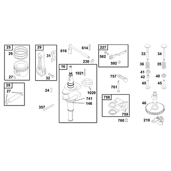 Parts for Briggs & Stratton 252707-0197-99: Piston Grp, Crankshaft, Cam Parts