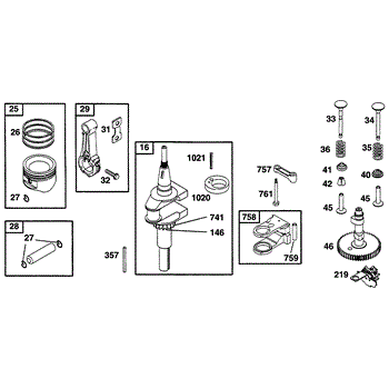 Parts for Briggs & Stratton 253707-0130-01: Piston Grp, Crankshaft, Cam Parts