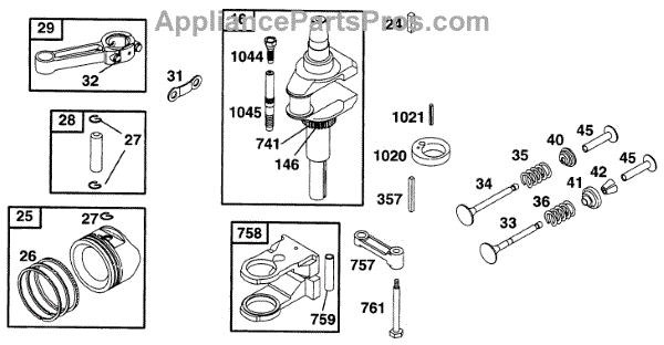 Parts for Briggs & Stratton 282707-0026-01: Piston Grp, Crankshaft Parts