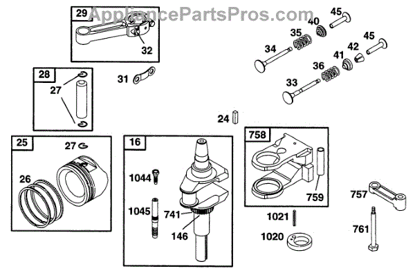 Parts for Briggs & Stratton 28C707-0029-01: Piston Grp, Crankshaft Parts