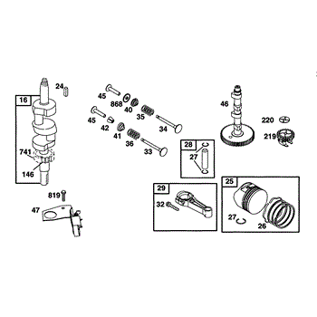 Parts for Briggs & Stratton 42C777-1237-01: Piston Grp, Crankshaft, Cam Parts