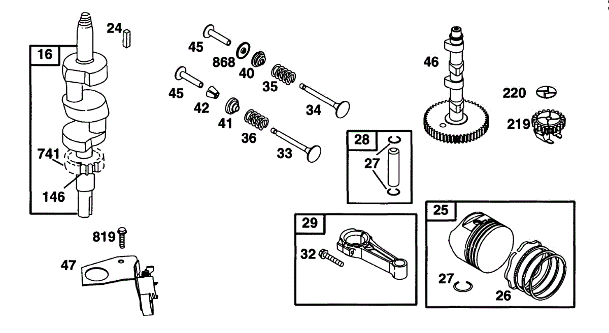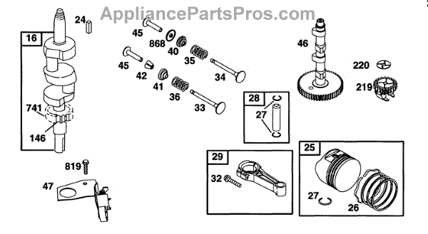 Parts for Briggs & Stratton 42C777-1238-99: Piston Grp, Crankshaft, Cam Parts