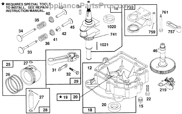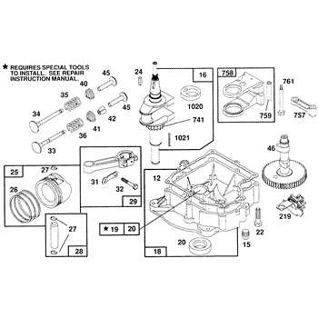 Parts for Briggs & Stratton 257702-4005-99: Piston Grp, Sump, Cam, Crank Parts