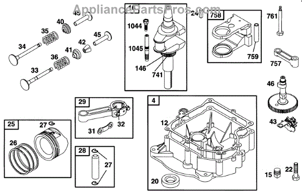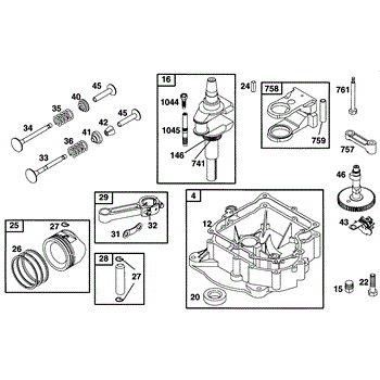 Parts for Briggs & Stratton 285707-0143-01: Piston Grp, Sump, Crank, Cam Parts