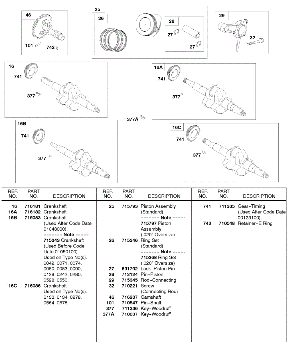 Parts for Briggs & Stratton 245432-0270-A1: Piston / Ring, Crankshafts Parts