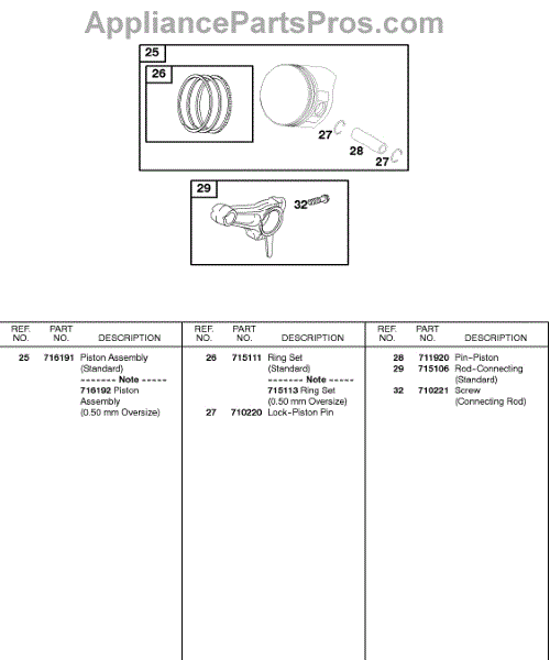 Parts for Briggs & Stratton 187432-0114-E9: Piston, Rings, Connecting Rod Parts
