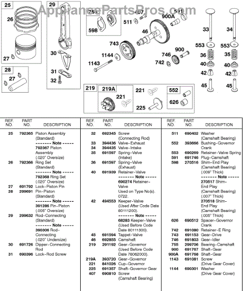 Parts for Briggs & Stratton 326431-0690-02: Piston, Rings, Connecting Rod, Camshaft, Valves Parts