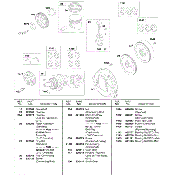 Parts for Briggs & Stratton 584447-0205-E2: Piston / Rings / Connecting Rod, Crankshaft, Flywheel Parts