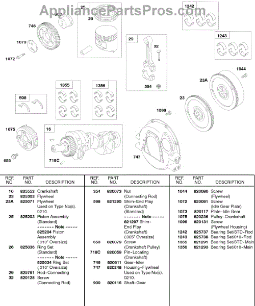 Parts for Briggs & Stratton 584447-0210-E2: Piston / Rings / Connecting Rod, Crankshaft, Flywheel Parts
