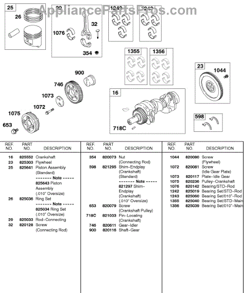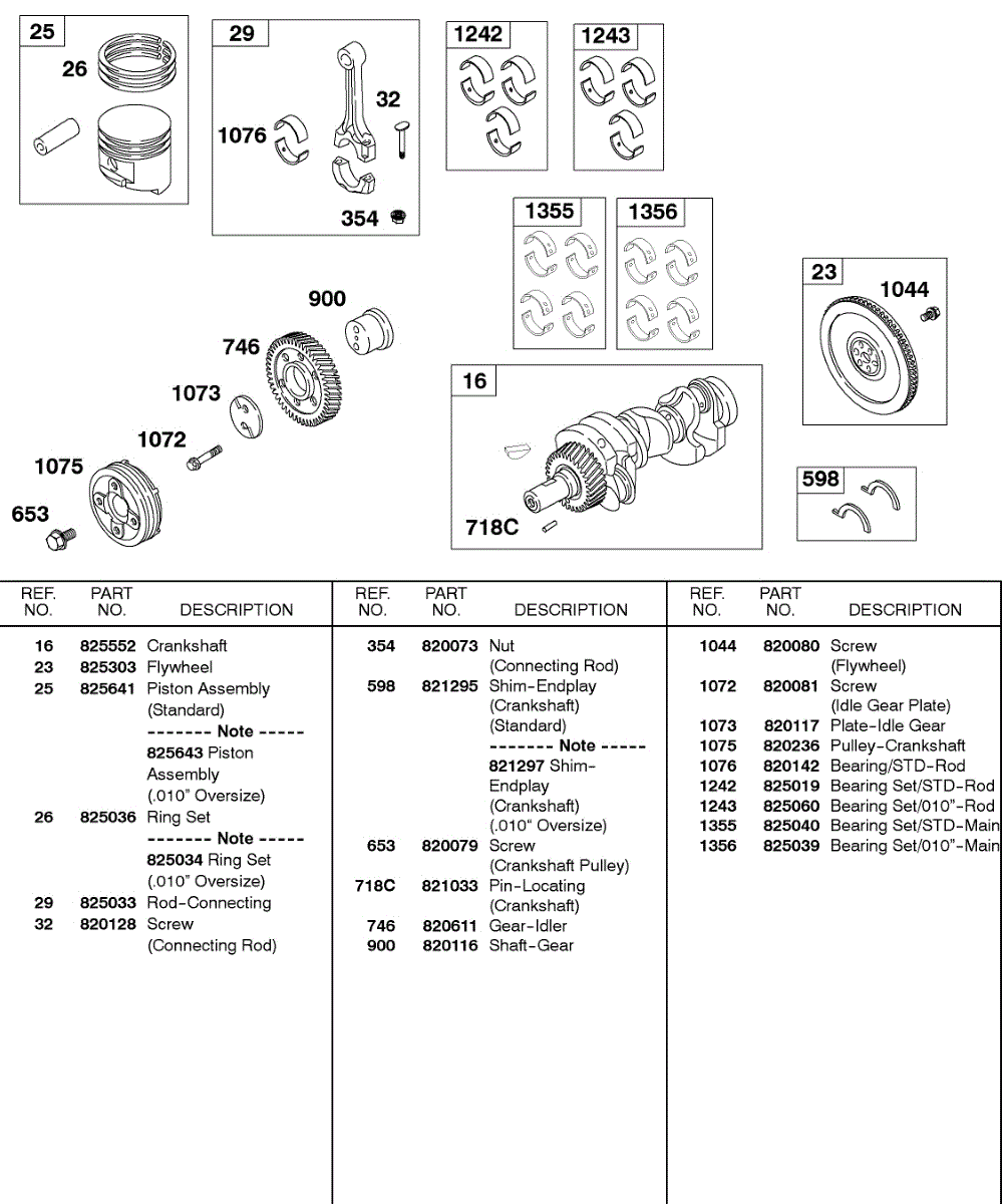 Parts for Briggs & Stratton 589447-0305-E2: Piston, Rings, Connecting Rod, Crankshaft, Flywheel Parts