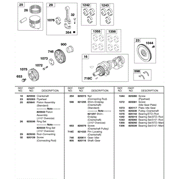 Parts for Briggs & Stratton 589447-0322-E2: Piston, Rings, Connecting Rod, Crankshaft, Flywheel Parts