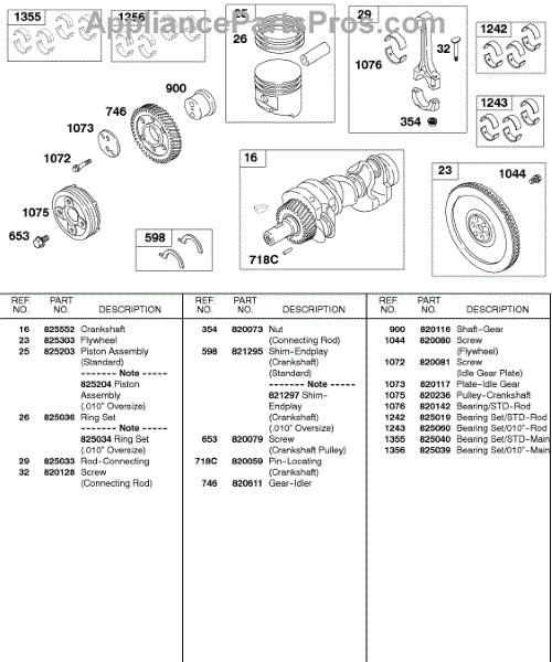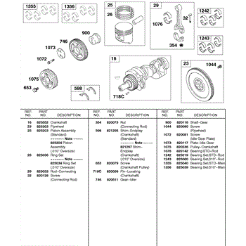 Parts for Briggs & Stratton 583447-0317-E2: Piston, Rings, Crankshaft, Flywheel, Bearing Sets Parts