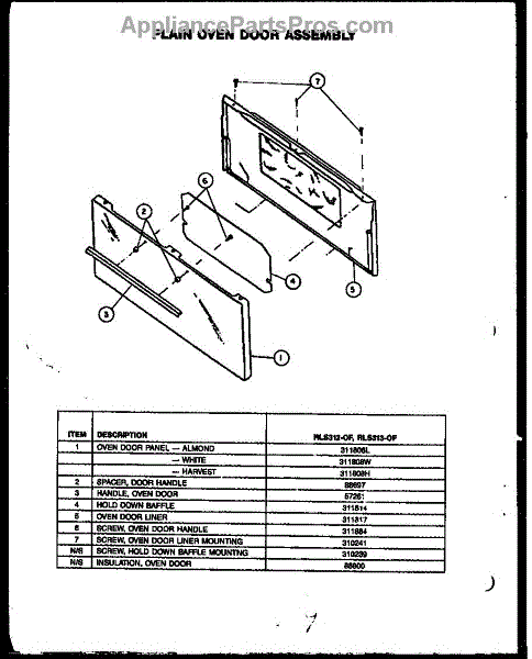 Parts for Caloric RLS312-OF: Plain Oven Door Assembly (Rls312-Of) (Rls313-Of) Parts
