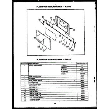 Parts for Caloric RMD369: Plain Oven Door (Rld112) Parts