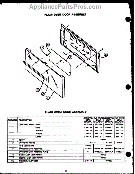 Parts for Amana SBK24AA0PU: Plain Over Door Assembly (Gbp24aa0pu) (Sbp24aa0pu) (Gbk24aa0pu) (Sbk24aa0pu) (Gbp26aa) (Sbp26aa) (Gbk26aa) (Sbk26aa) Parts