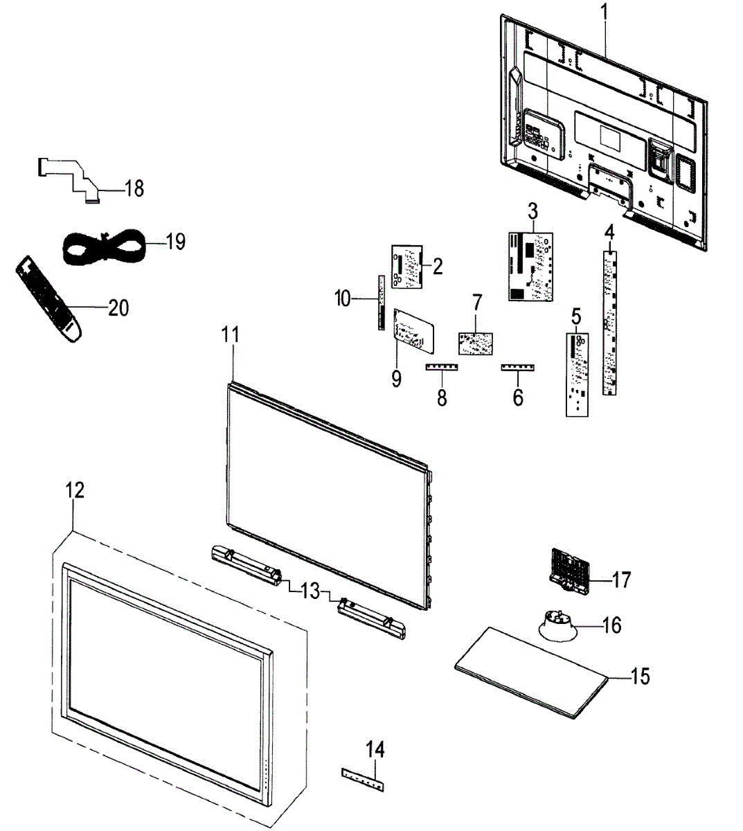 Self-tapping screw secures TV stands, back panels, and internal components. Replaces lost, stripped, or missing screws during TV assembly or repair.