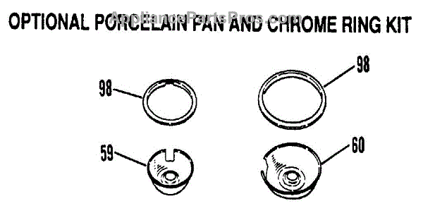 Parts for Kenmore 911.4658815 (9114658815, 911 4658815): Porcelain Pan / Crome Ring Kit Parts