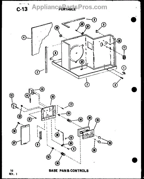 Parts for Amana 9P-2SPMK/P54972-31R: Portable Base Pan & Controls Parts