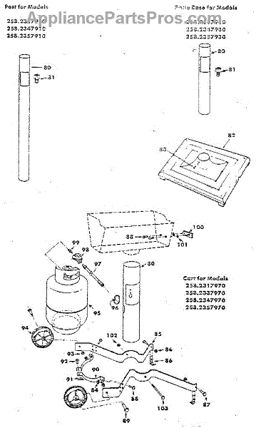Parts for Craftsman 2582357970: Post, Patio Base And Cart Parts