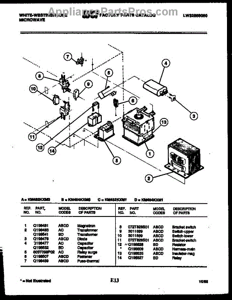 Parts for Frigidaire KM482KXM0: 05 - Power Control Parts
