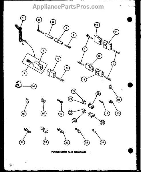 Parts for Amana LE2812/P7804816W: Power Cord Amd Terminals (Lg2812 / P7804816w) (Le2902 / P7804817w) (Lg2912 / P7804818w) (Le9002 / P7804813w) (Lg9012 / P7804814w) Parts