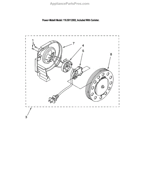 Parts for Kenmore 116.20112002 (11620112002, 116 20112002): Power Cord Reel Parts