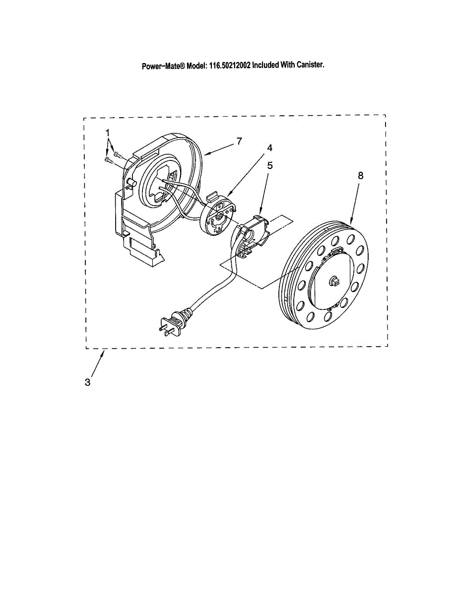 Parts for Kenmore 116.20212002 (11620212002, 116 20212002): Power Cord Reel Parts