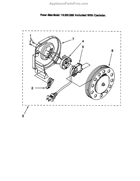 Parts for Kenmore 116.20512000 (11620512000, 116 20512000): Power Cord Reel Parts