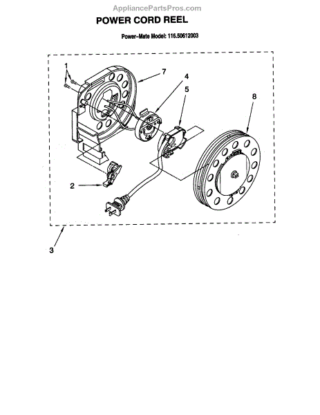 Parts for Kenmore 116.20612003 (11620612003, 116 20612003): Power Cord Reel Parts