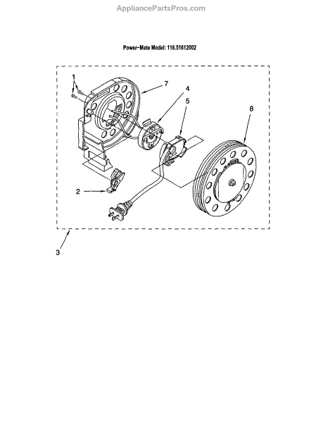 Parts for Kenmore 116.21612002 (11621612002, 116 21612002): Power Cord Reel Parts