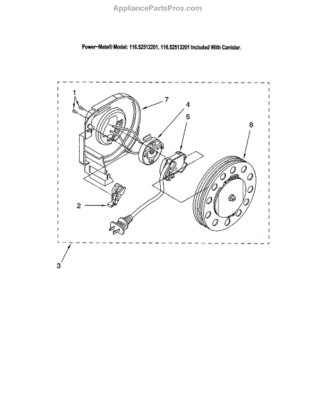 Parts for Kenmore 116.22512201 (11622512201, 116 22512201): Power Cord Reel Parts