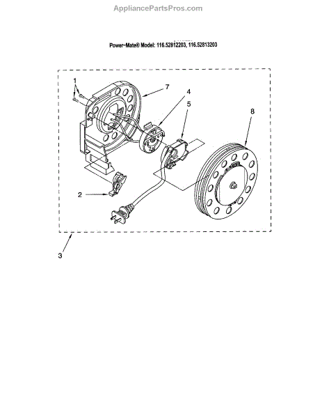 Parts for Kenmore 116.22813203 (11622813203, 116 22813203): Power Cord Reel Parts