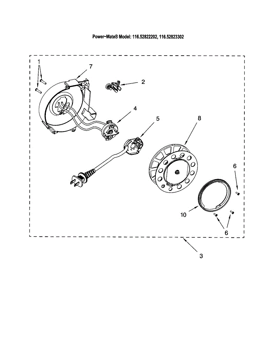 Parts for Kenmore 116.22823302 (11622823302, 116 22823302): Power Cord Reel Parts