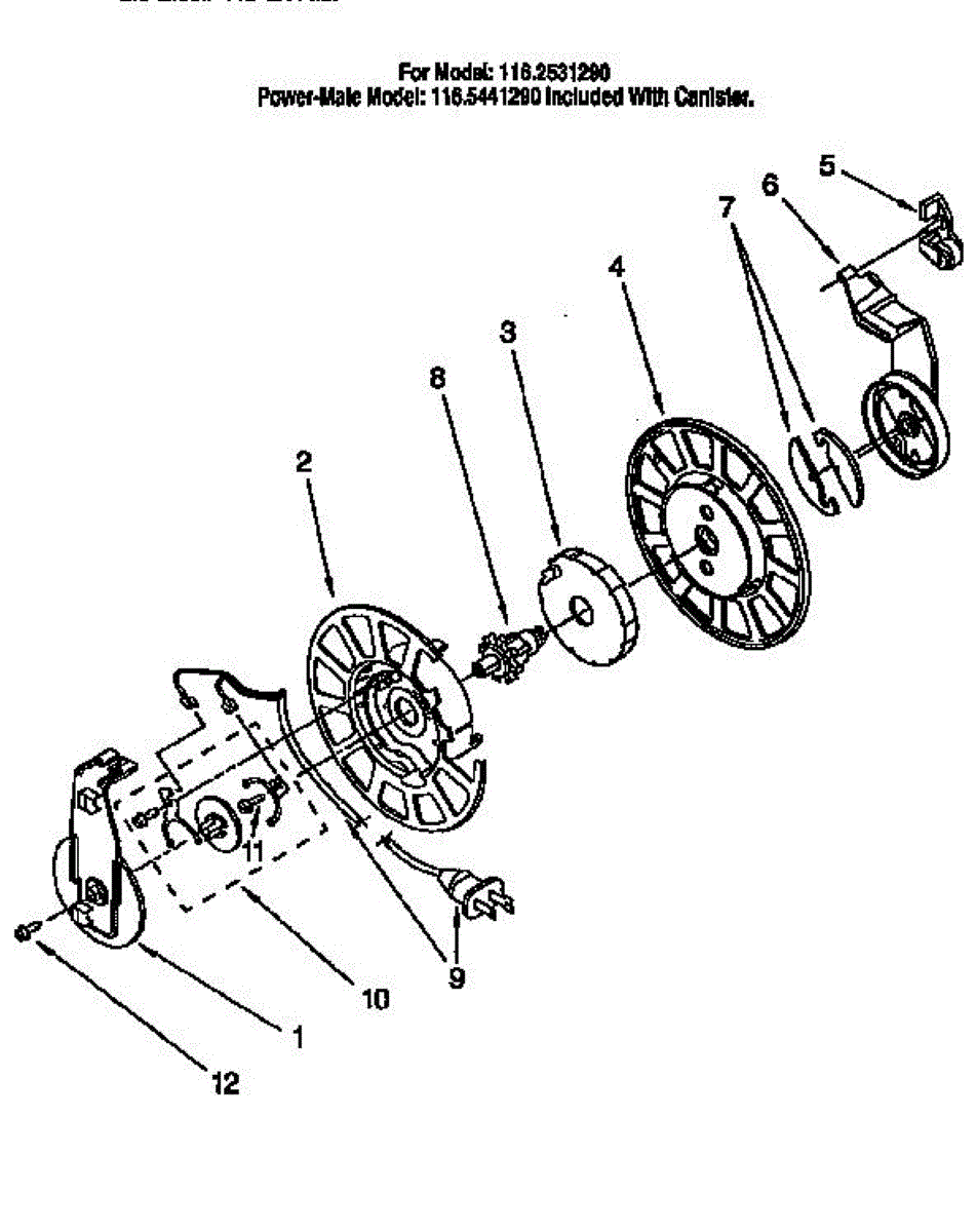 Parts for Kenmore 116.2531290 (1162531290, 116 2531290): Power Cord Reel Parts
