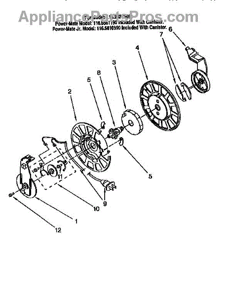 Parts for Kenmore 116.26212690 (11626212690, 116 26212690): Power Cord Reel Parts