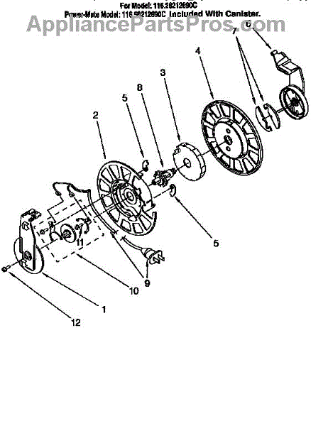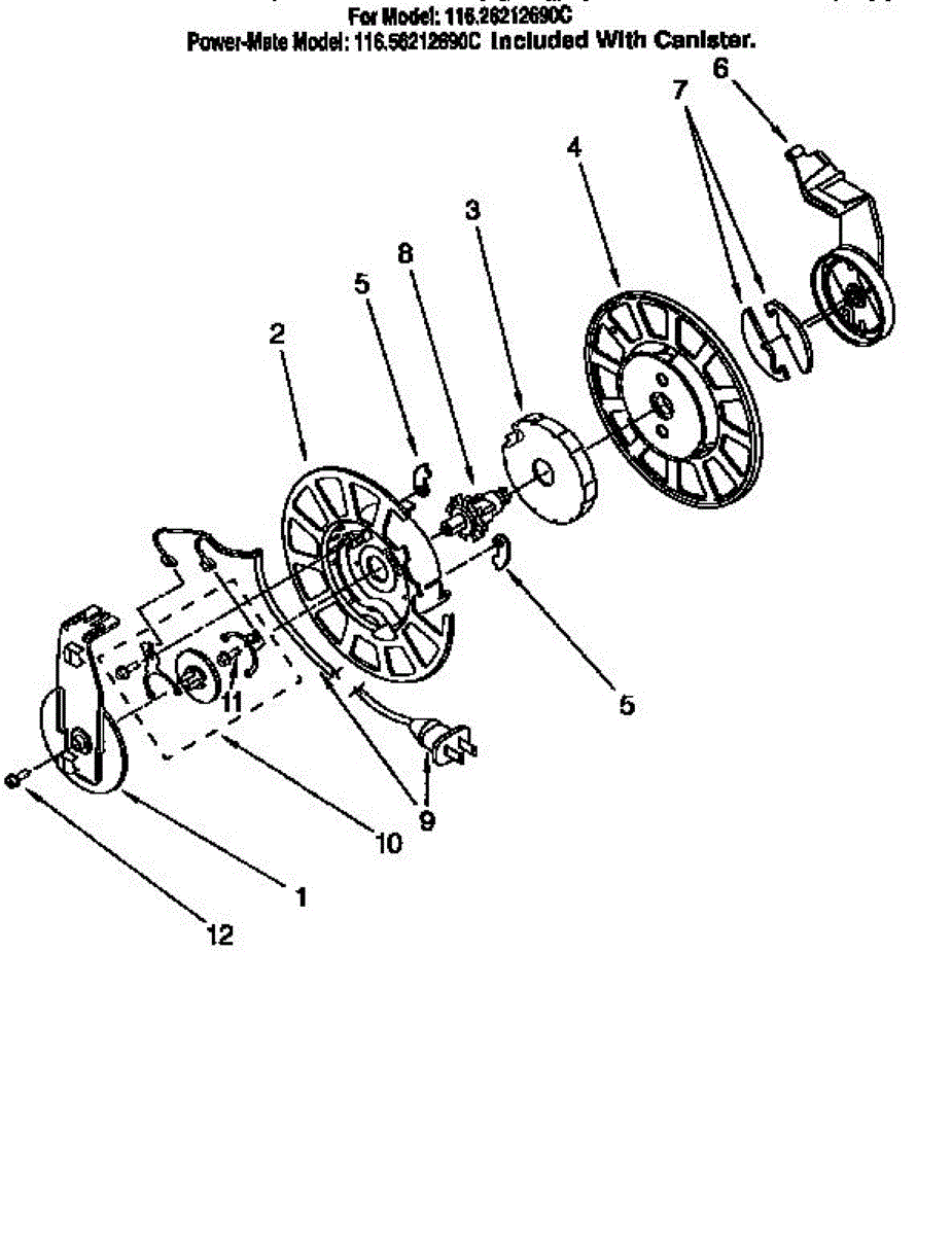 Parts for Kenmore 116.26212690C (11626212690C, 116 26212690C): Power Cord Reel Parts