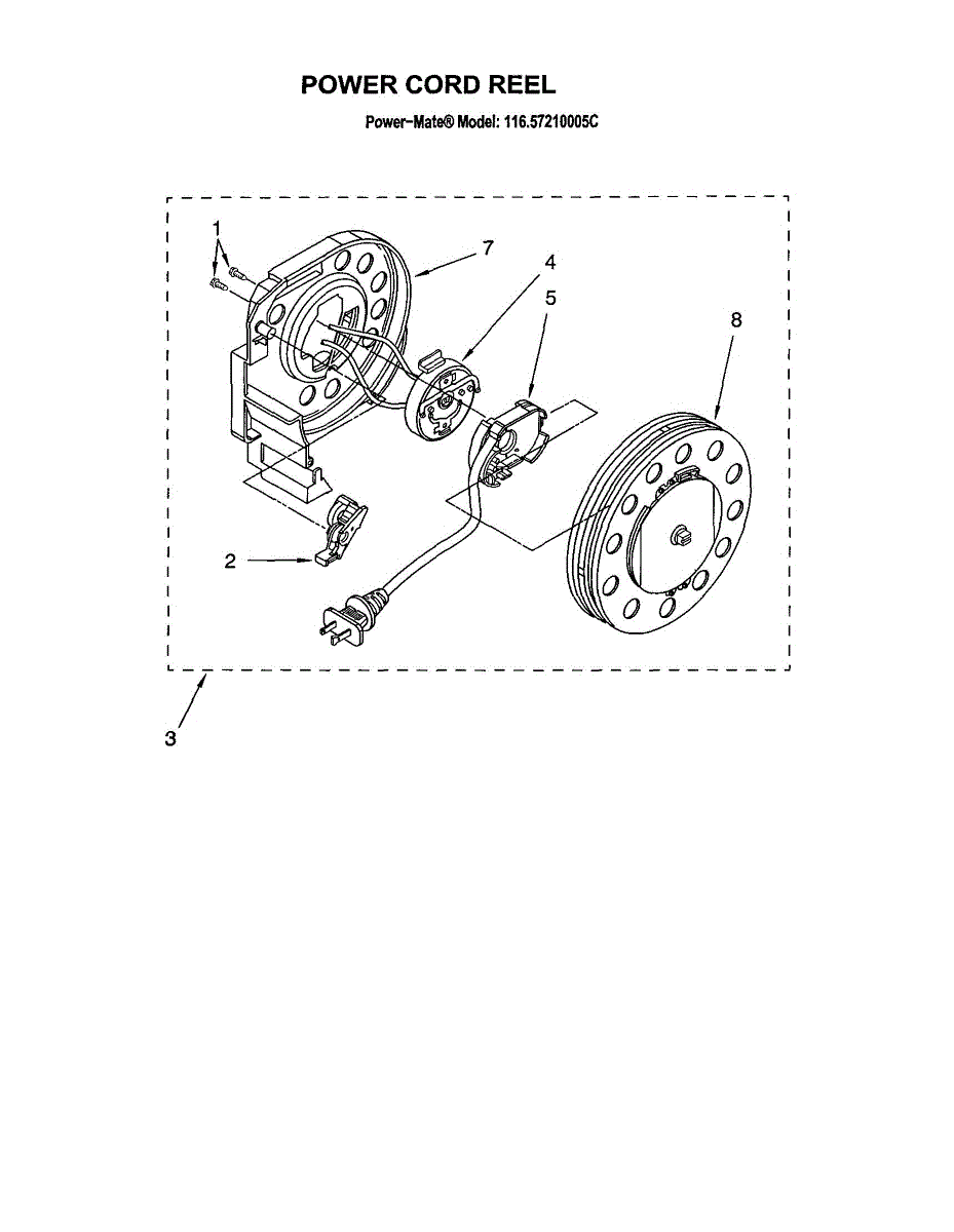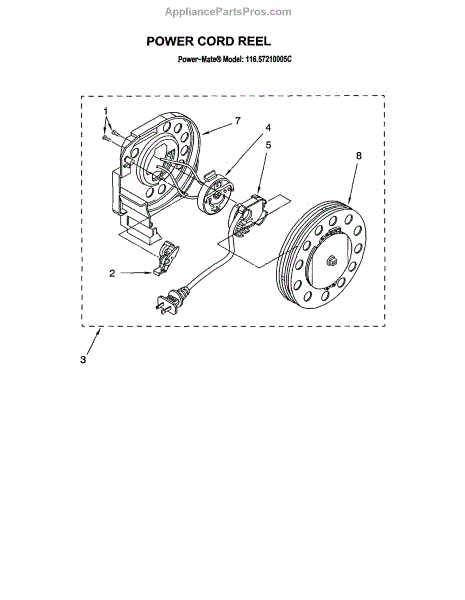 Parts for Kenmore 116.27210005C (11627210005C, 116 27210005C): Power Cord Reel Parts