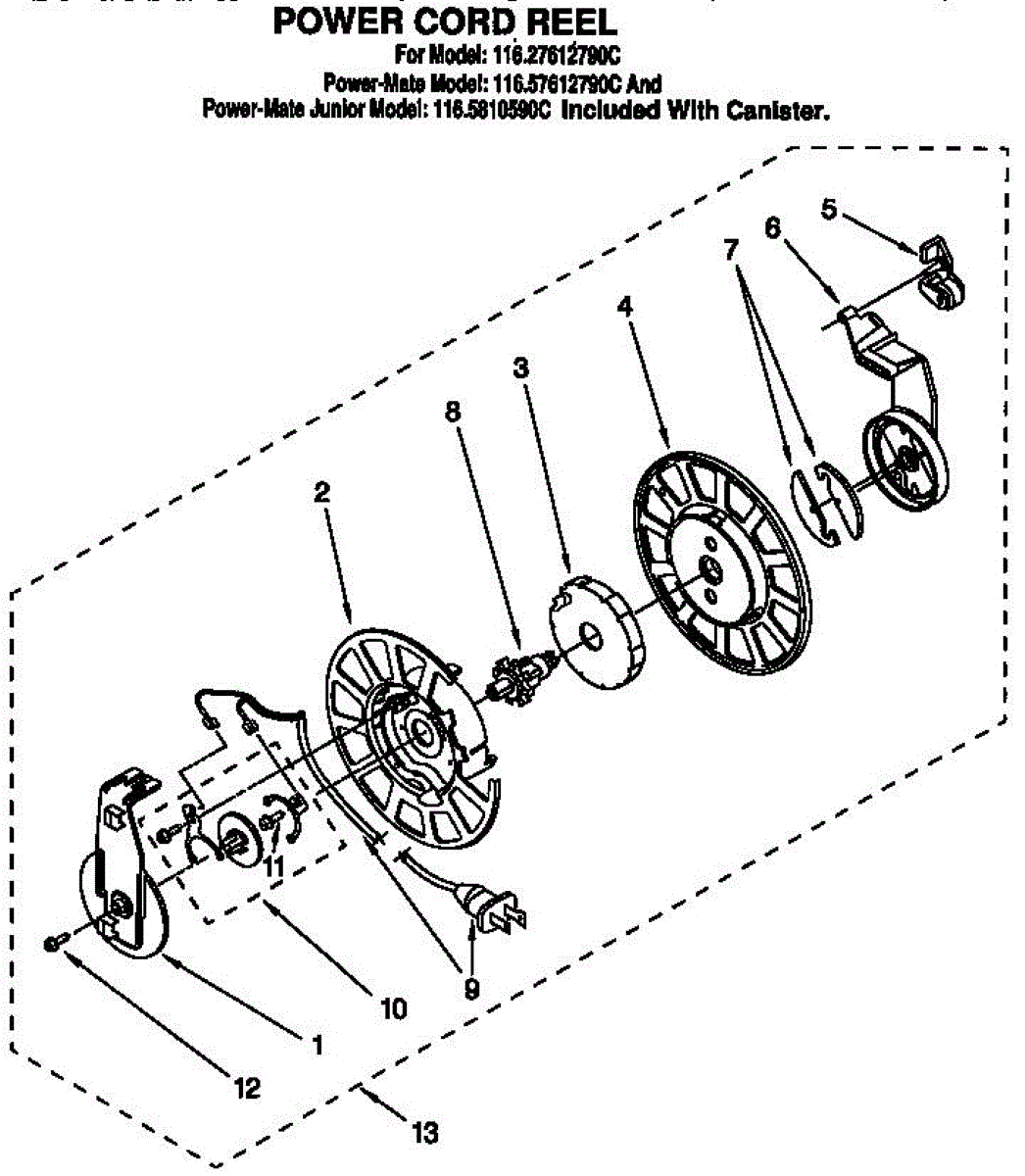 Parts for Kenmore 116.27612790C (11627612790C, 116 27612790C): Power Cord Reel Parts