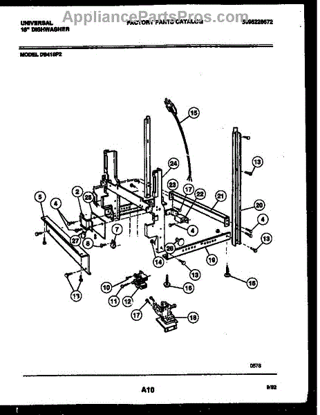 The Side Mount Kit is an OEM replacement part for Frigidaire dishwashers. It contains mounting brackets, screws, and other hardware required to securely install the dishwasher against cabinetry in a side-by-side configuration. Proper attachment is necessary for stability and safety during operation.
