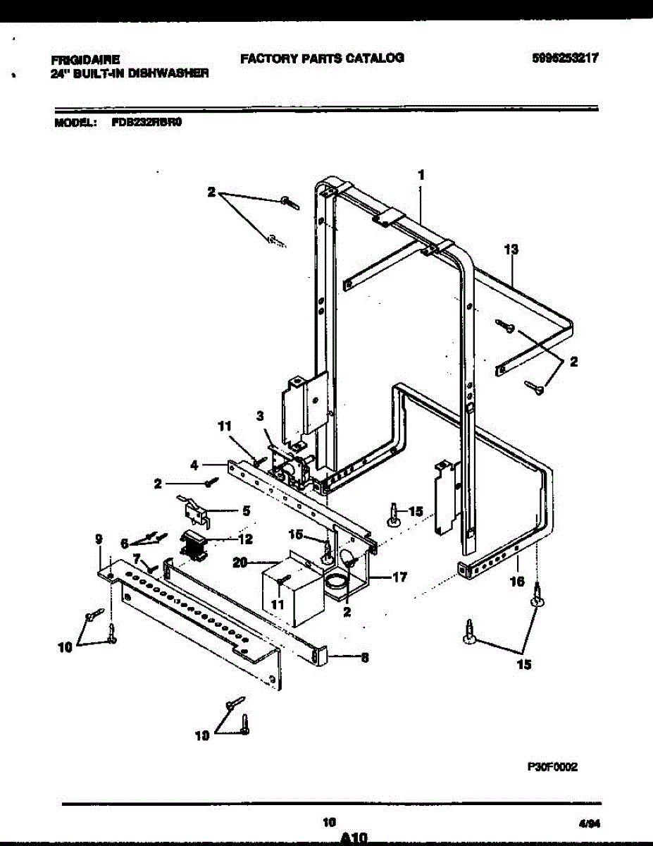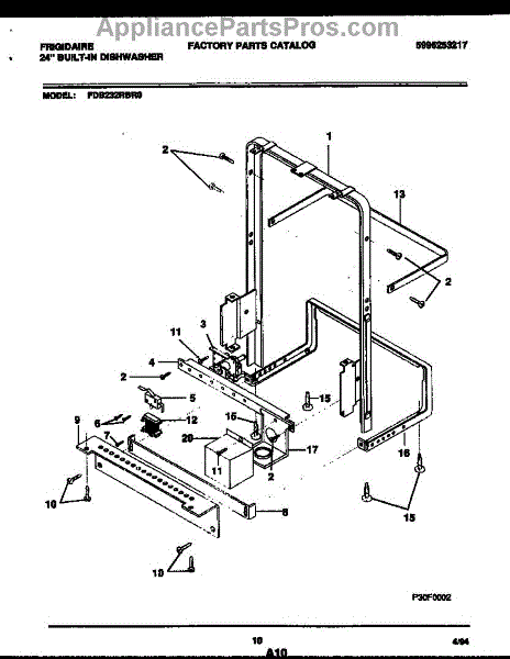 Black screw secures dishwasher access panels and kick plate assemblies. Replace missing or stripped screws during panel removal or appliance repair.