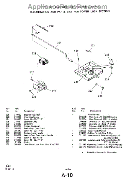 Parts for Whirlpool 2372W00: 09 - Power Lock Parts